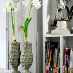 Note: There is very little chance this amaryllis will bloom again after the first bloom time. However, it is possible to help it bloom again by removing the wax layer and planting the bulb in the ground.