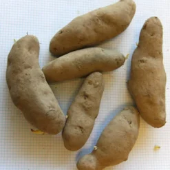 Often referred to as the “superstar” of the fingerlings, this Russian Banana is a favorite among chefs and matures in 100-130 days. They have excellent flavor and versatility: great when baked, boiled, or steamed. Tubers are yellow, banana-shaped and of the waxy-type.