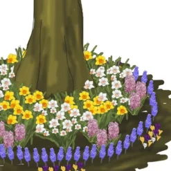 This complete spring garden will fill a 100 sq ft planting area, and is designed for planting around the base of a tree. Easy to grow bulbs such as daffodils, hyacinth and muscari are all deer resistant and will provide a burst of color mid-spring (Pink, white, purple, yellow, orange and blue)!